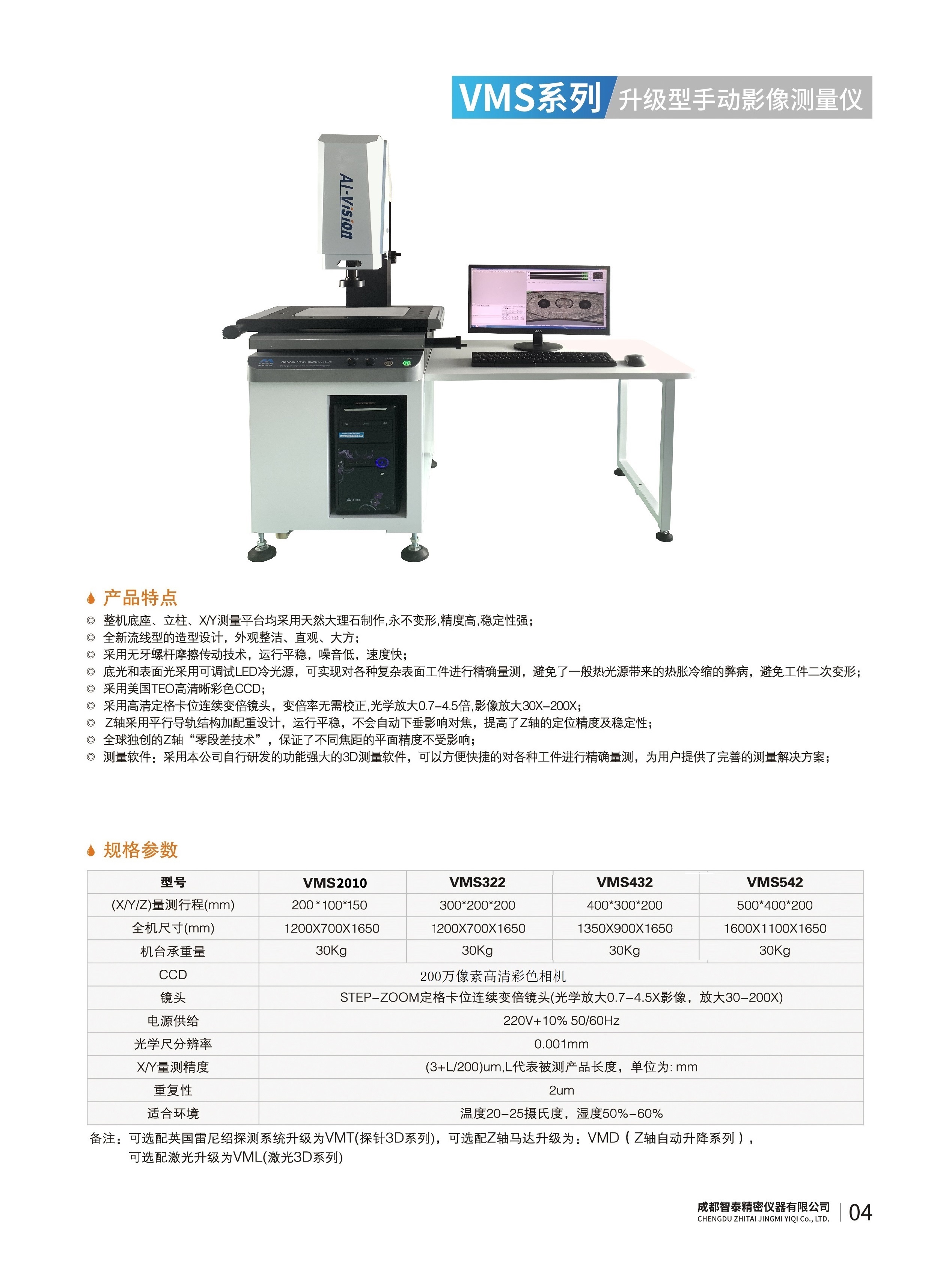 成都智泰精密儀器有限公司專注于精密測量儀器,人工智能,智能制造領(lǐng)域,專業(yè)從事智能視覺自動化檢測解決方案的貿(mào)易型企業(yè)。公司成立于2011年,位于天府之國成都,現(xiàn)有行業(yè)精英十余人,辦公倉儲面積200余平米。 公司主要產(chǎn)品為精密光學影像測量儀,精密輪廓形狀測量儀,精密機器人定位系統(tǒng),精密智能視覺尺寸檢測儀器,精密表面缺陷智能檢測設(shè)備,工業(yè)工程特種機器人。 公司憑借過硬的技術(shù)實力和產(chǎn)品方案,率先進入智能視覺自動化檢測領(lǐng)域,推廣以精密智能視覺自動化檢測為基礎(chǔ)的機器人自動化應用,公司不斷整合上下游的資源,擁有巨大的全產(chǎn)業(yè)鏈優(yōu)勢。客戶群體覆蓋了我國精密制造業(yè)的多數(shù)領(lǐng)域,包括航空、航天、軍工、汽車、新能源、光伏、食品,精密電子、精密機械、模具、PCB、LCD、五金、塑膠、醫(yī)療、教育、計量及科研院所等行業(yè)。 公司創(chuàng)新的產(chǎn)品能滿足生產(chǎn)與制造行業(yè)客戶的要求,訓練有素的工程師能及時提供多種技術(shù)服務(wù),如解...